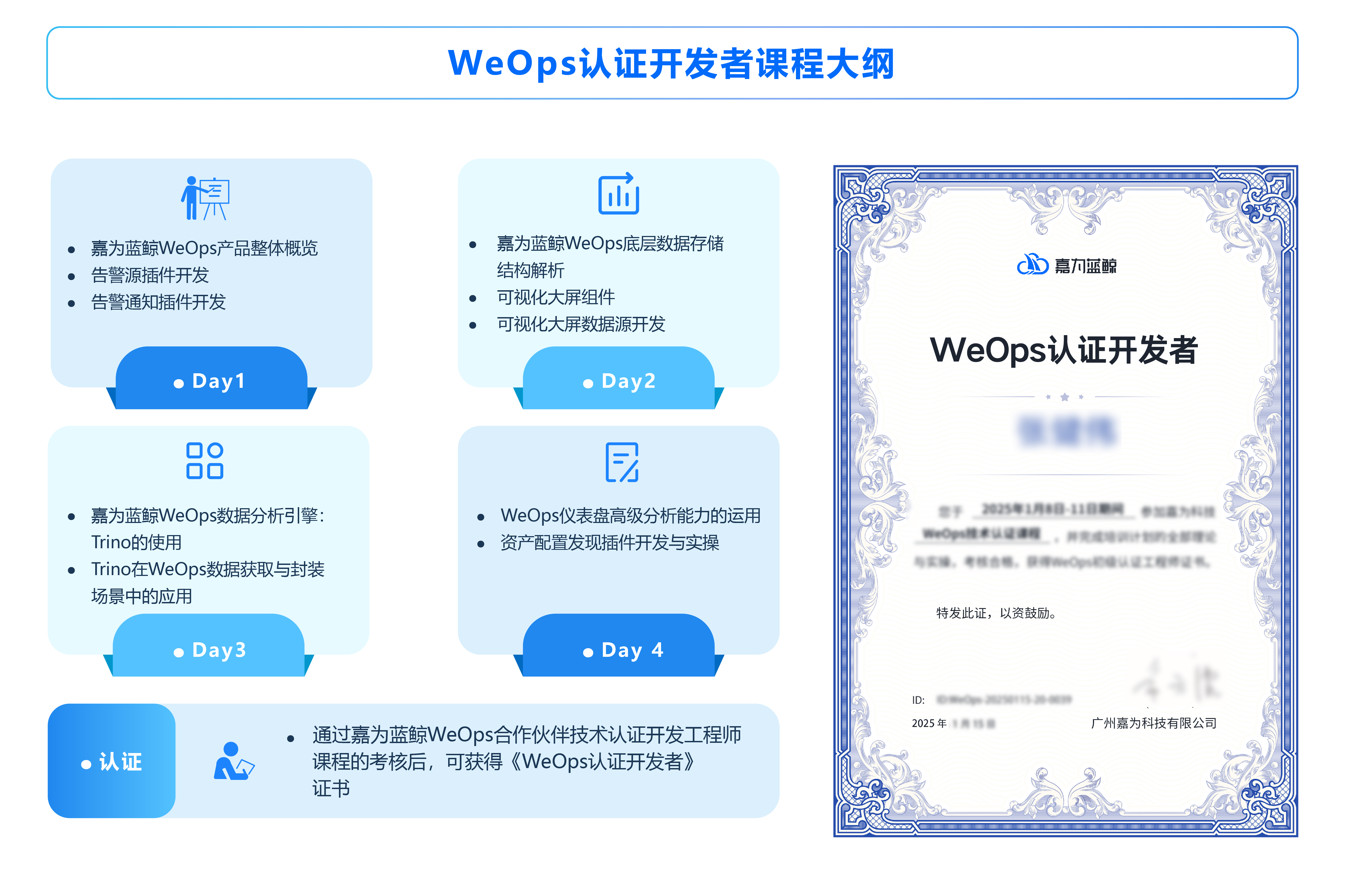 扎根全國授權區域,為當地客戶提供即時、專業的嘉為藍鯨WeOps產品交付實施和售后服務,快速響應客戶需求,以優質服務增強客戶信賴,穩固品牌區域口碑。