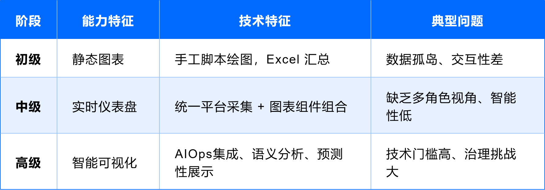 企業在監控可視化方面的建設,通常會經歷如下能力階段: