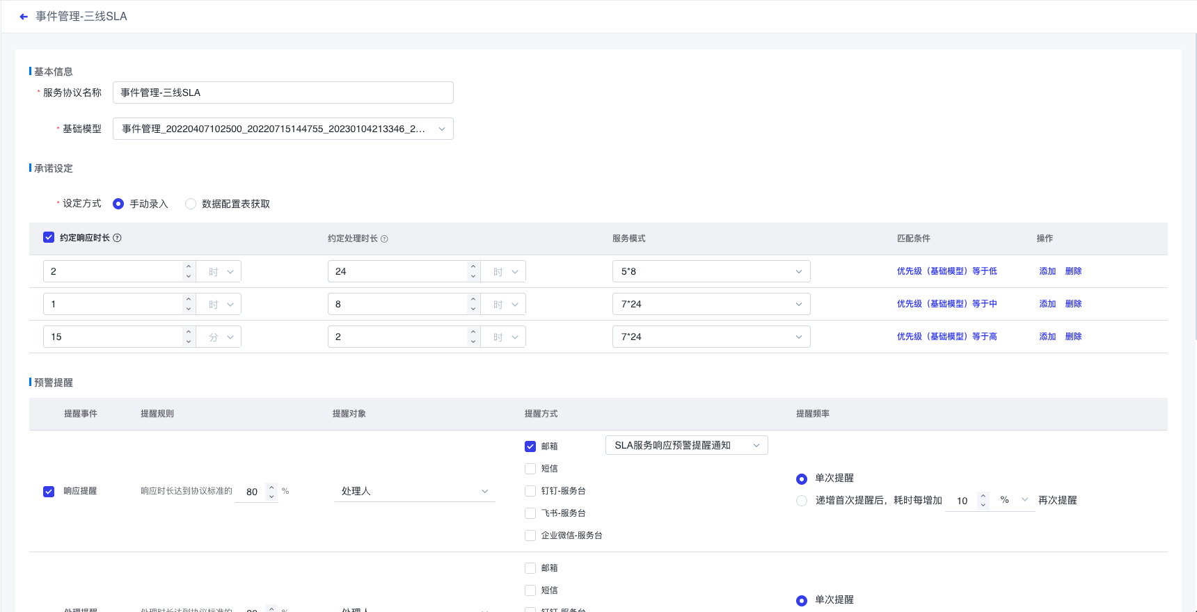 發布服務時,可在設定的時間內去完成服務協議所綁定的節點,如:a、b節點綁定了服務協議,約定1小時解決,則a、b節點的處理人需要在1小時內完成節點處理信息,否則將超時。