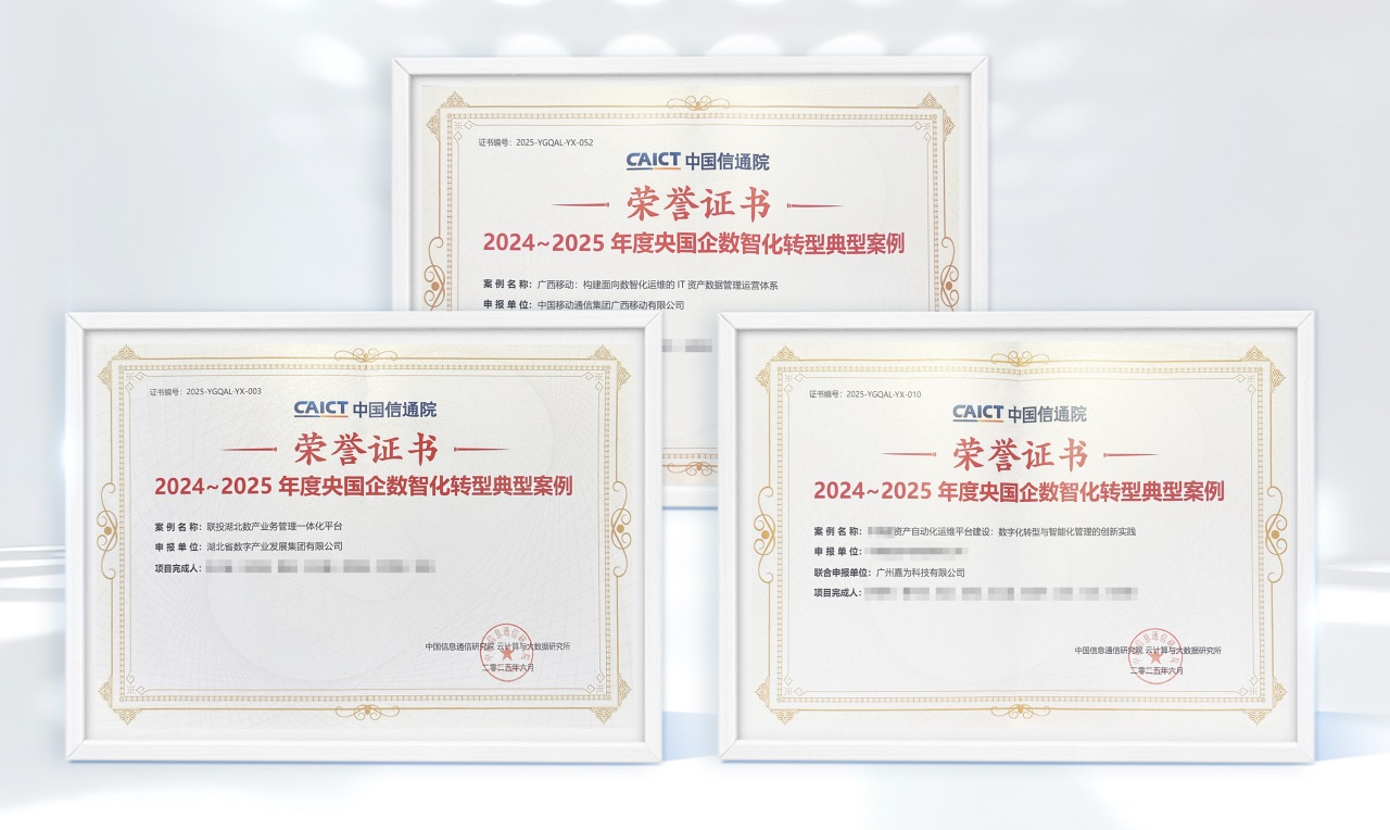 在首次央國企數智化與轉型戰略成果發布會上,嘉為藍鯨攜手廣西移動、湖北數產以及某資產管理公司打造的三大案例,成功斬獲央國企數智化轉型典型案例獎項,進一步印證了嘉為藍鯨在助力企業數智化轉型領域的實踐成果與行業認可。